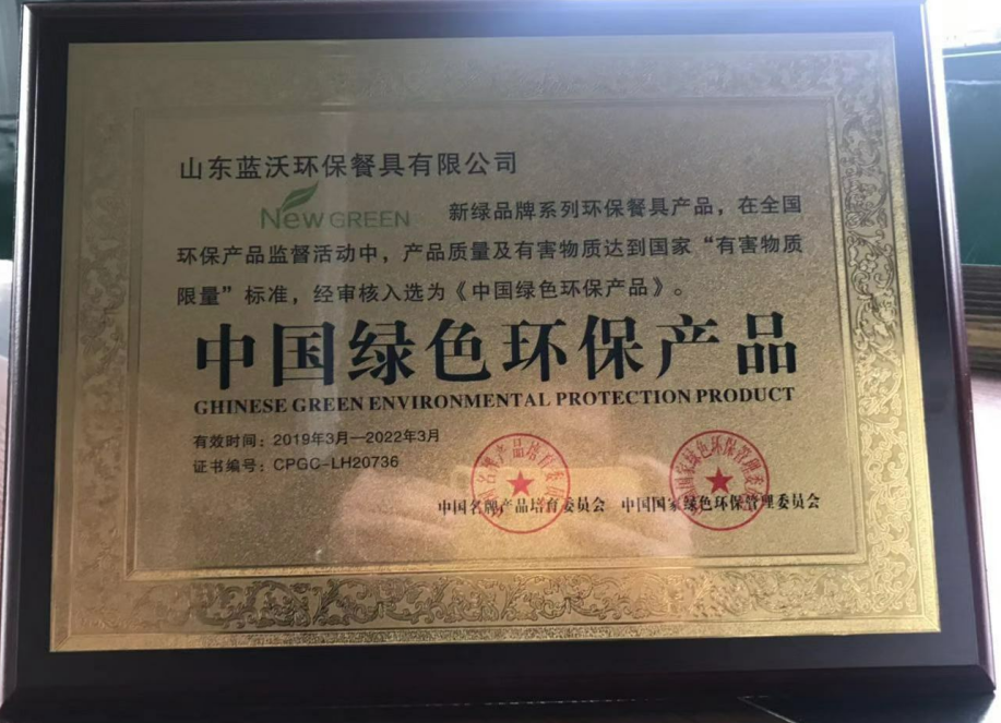 我司生产的新绿品牌(new green)小麦秸秆和甘蔗秸维环保餐具入选中国绿色环保产品,此次产品的入选意味着对公司提出了更高的要求,蓝沃团队将不遗余力的为环保职业的发展做出自己的贡献!