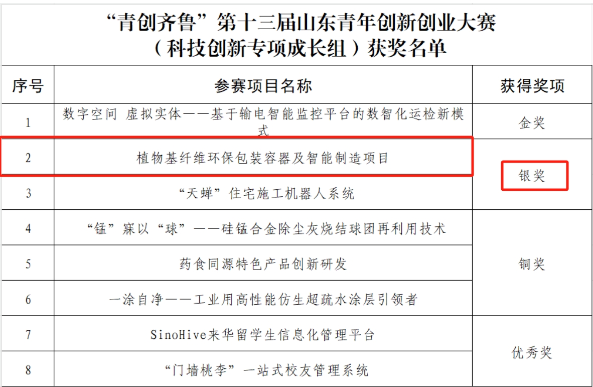 8月22日在金秋送爽的季节里,“青创齐鲁”第十三届山东青年创新创业大赛圆满落下了帷幕,这场汇聚了全省青年才俊智慧与梦想的盛宴,不仅见证了无数创新火花的碰撞,更激发了社会各界对青年创业创新的高度关注与热烈讨论。在众多脱颖而出的项目中,山东智沃机械设备有限公司的植物基秸秆纤维环保容器(餐具)及智能制造项目以其独特的创新理念、卓越的技术实力以及显著的社会效益,荣获了科技创新成长组银奖,成为本次大赛的一大亮点。