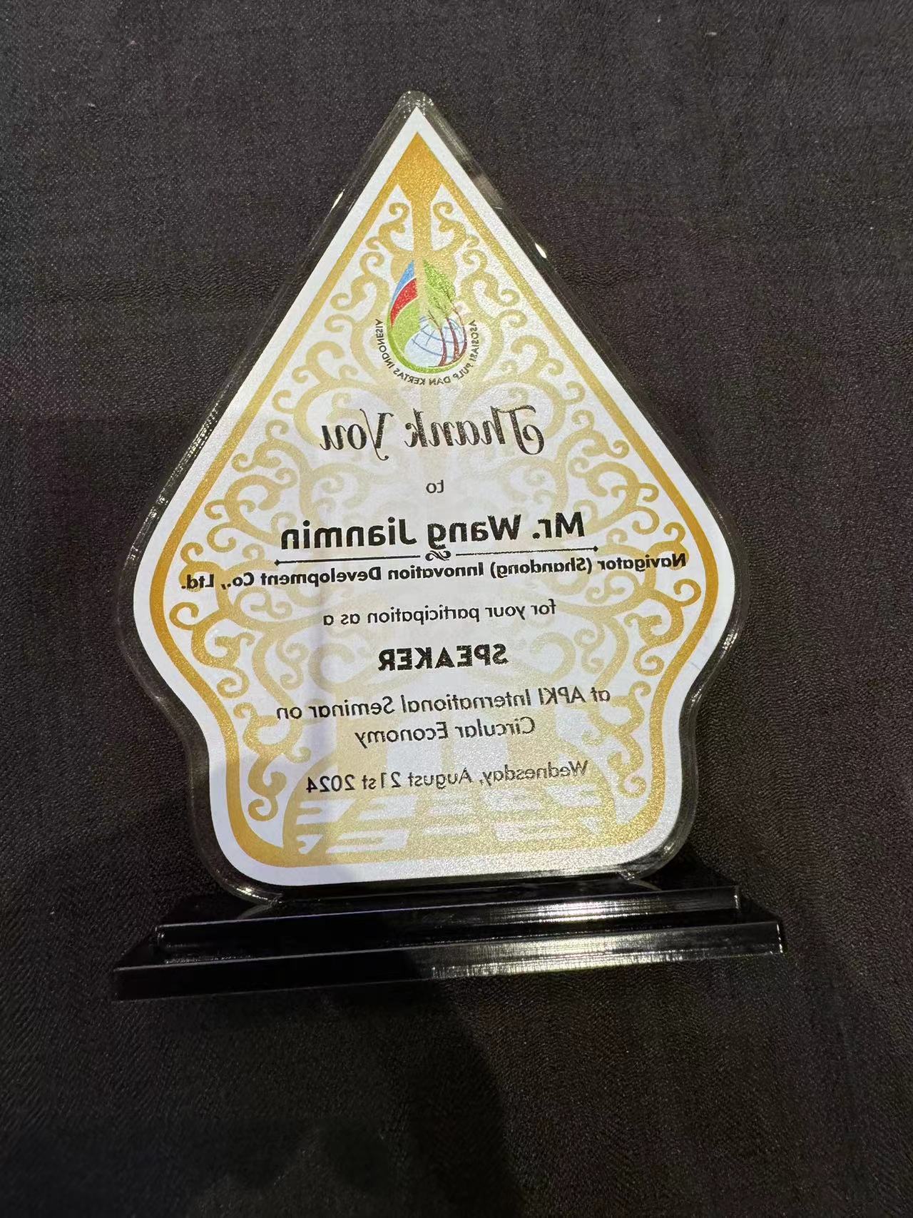 接过奖牌的那一刻,王建民先生的脸上洋溢着谦逊而坚定的笑容。他深知,这既是荣誉,也是责任。在未来的日子里,他将带领山东智沃继续深耕纸浆模塑领域,以更加饱满的热情和更加坚定的步伐,为推动行业的可持续发展贡献自己的力量。而这段在印尼雅加达纸浆模塑展会上的精彩演讲,也将成为他职业生涯中一段难忘的篇章,激励着更多人投身于环保事业,共同守护我们美丽的地球家园。