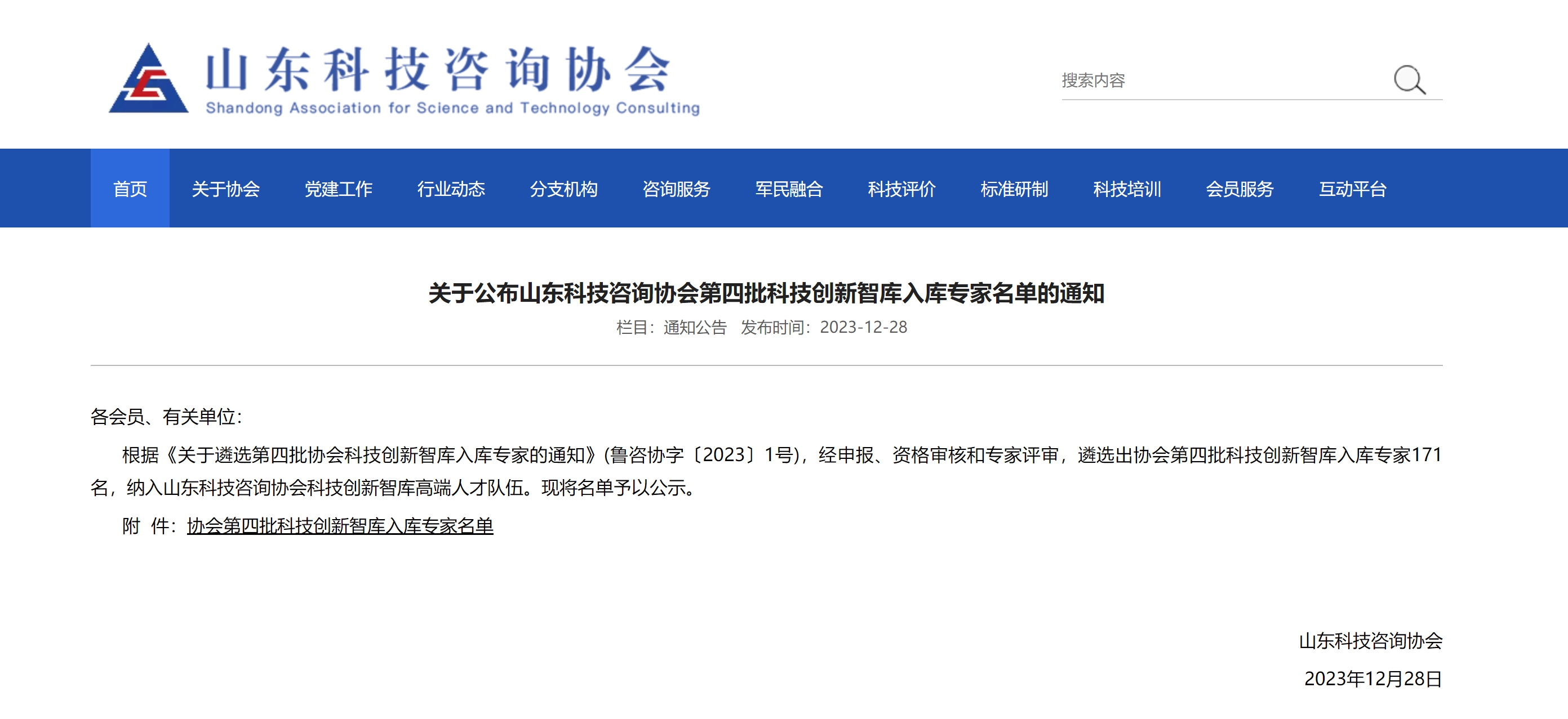近日,山东科技咨询协会公布了第四批科技创新智库专家名单,山东智沃机械设备有限公司董事长王建民成功入选。这一荣誉不仅是对王建民个人成就的认可,也是对山东智沃机械设备有限公司在科技创新领域的肯定。