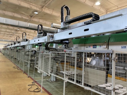 该设备使用桁架机械臂代替人工转移,分为网转和模转,该设备生产效率接近人工,低于6轴机器人产能。